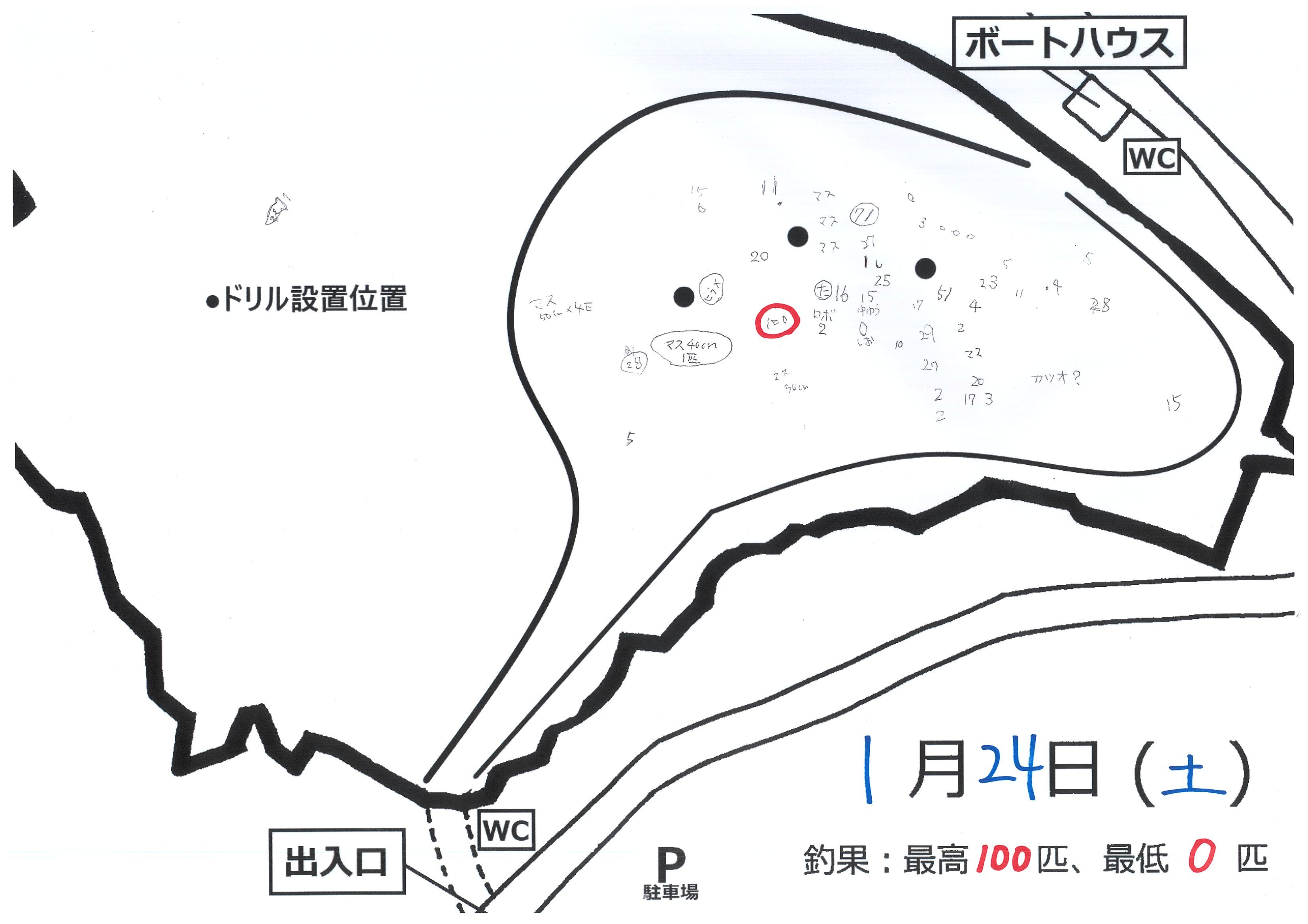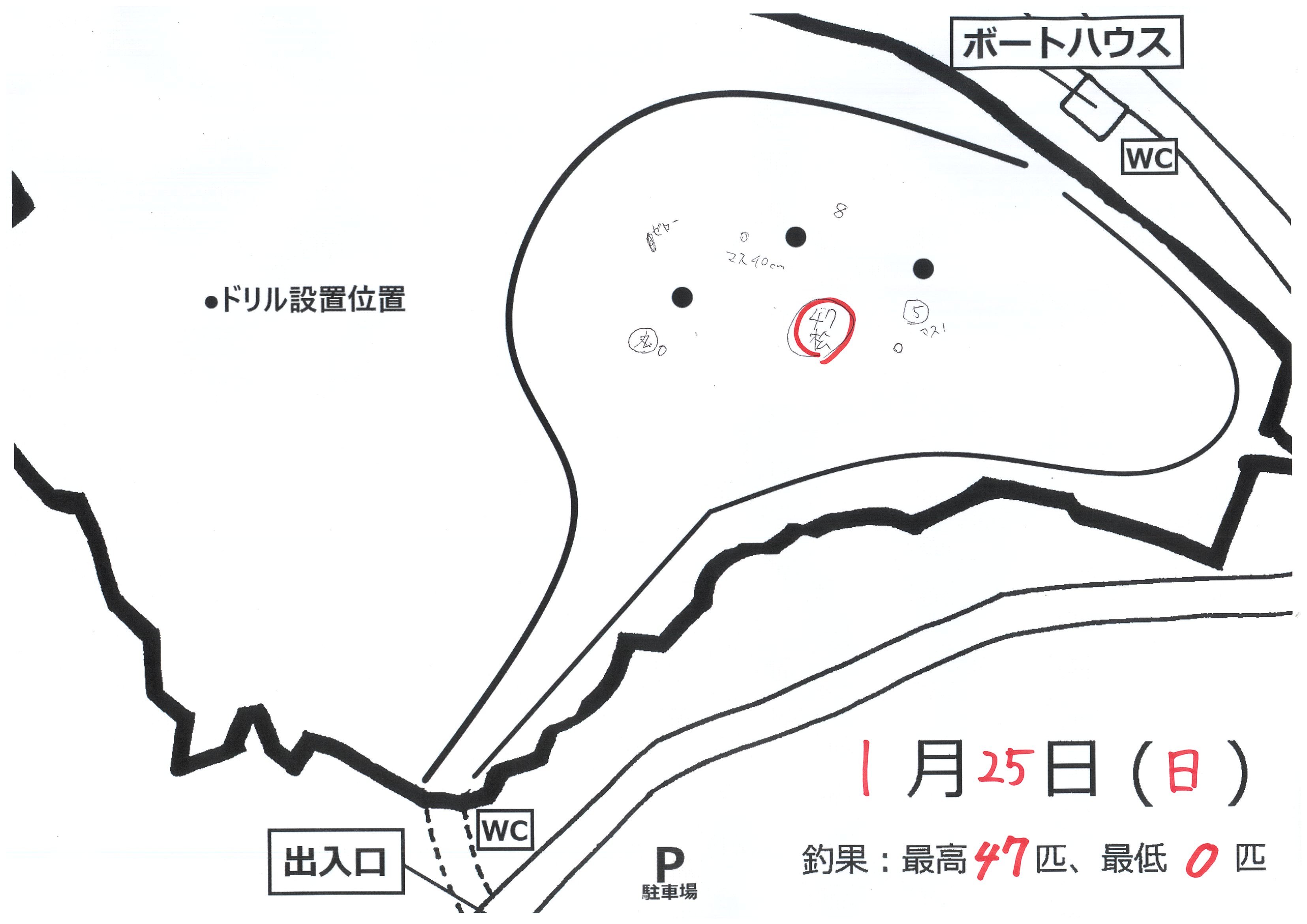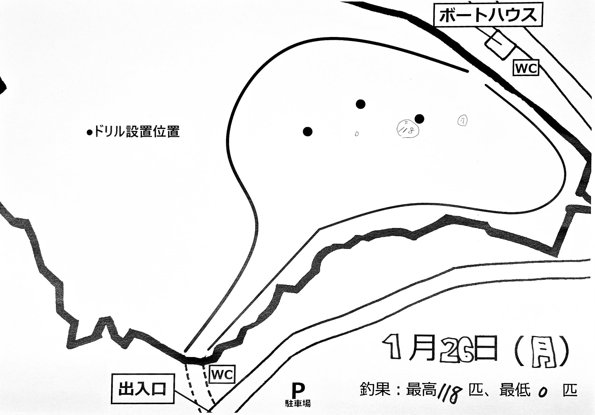 | 日付 | 最高釣果(匹) | ポイント | 天気 | 釣果MAP | 備考 |