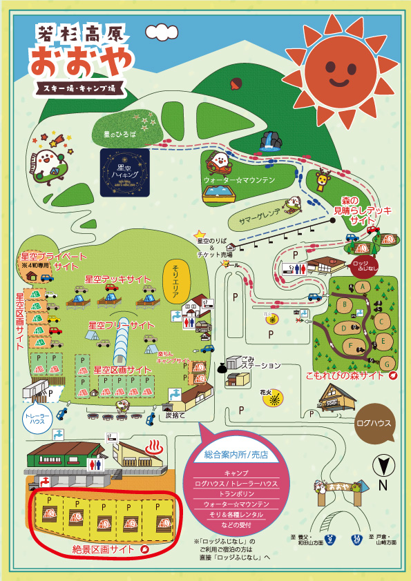 サイト料には以下のスペースが含まれています。テント・タープは付いていません。