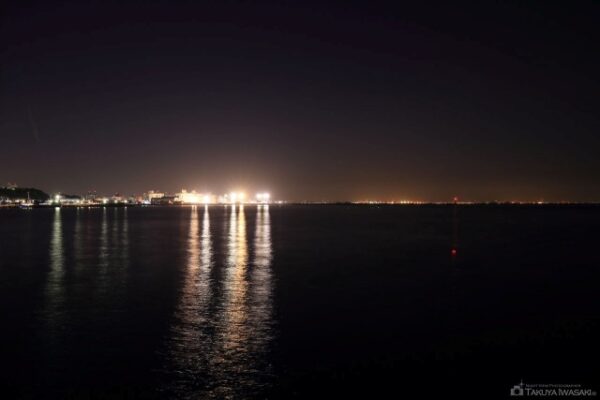 馬堀海岸遊歩道は、横須賀市の南端に位置し、東京湾に沿って整備された全長約2kmの美しい海沿いの散策路です。昼間の海景もさることながら、夜には対岸の房総半島や東京湾を航行する船の灯りが織りなす、幻想的な海の夜景が広がります。海岸線に沿って設置された照明が足元を優しく照らし、ナイトウォーキングやゆったりとした夜の散策にぴったりの環境が整っています。