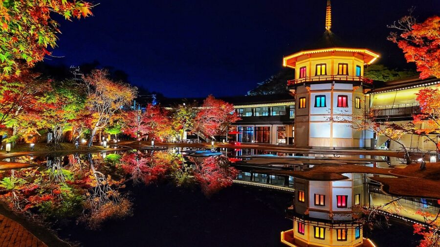 宮城県松島離宮は2020年にオープンした新しい観光施設で、現代的な庭園と松島の自然が調和した美しい紅葉スポットです。施設内の庭園は四季を通じて美しく、秋には見事な紅葉を楽しむことができます。松島離宮の特徴は、伝統的な日本庭園の美しさと現代的なデザインが融合した独特の景観。屋上庭園からは松島湾を一望でき、紅葉越しに見る海の景色が絶景です。館内にはレストランやカフェもあり、紅葉を眺めながら食事を楽しむことも可能。お土産ショップも充実しており、松島観光の拠点としても便利です。新しい施設のため設備も充実しており、バリアフリーにも配慮されています。入館料は大人600円で、庭園散策と展示見学がセットになっています。松島の新たな紅葉名所として注目を集めている施設です。