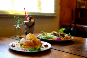 「おしま屋KAGUカフェ」は、阿蘇市内牧に位置するアットホームな雰囲気のカフェで、パンとスイーツの両方が楽しめるお店です。名物は「天使のパン」と「悪魔のパン」というユニークなネーミングのパン。ふんわりと優しい食感の天使のパンと、濃厚な味わいの悪魔のパンは、どちらも一度食べたら忘れられない魅力があります。ドリンクメニューも豊富で、コーヒーや紅茶との相性も抜群。木の温もりを感じる落ち着いた店内は、一人でもグループでもゆっくり過ごせる空間です。観光や温泉帰りに立ち寄るのにぴったりで、地元の人にも観光客にも愛されるカフェです。