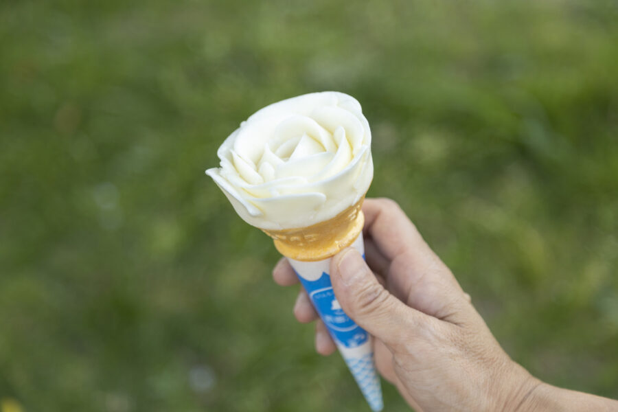 前田冷菓は1960年創業、長崎の夏の風物詩「ちりんちりんアイス」で知られる老舗氷菓店です。昔ながらの製法を守って作られるアイスは、シャリシャリと軽やかな口あたりとやさしい甘さ、低カロリーが魅力。観光名所である眼鏡橋や平和公園など、長崎市内各所の青い移動屋台で販売されるほか、田中町にある青と白の直売所ではここだけの限定メニューやコラボ商品も楽しめます。特にコーンの上でヘラを使い、バラのように盛りつける「バラ盛り」の見た目がフォトジェニックで観光客にも人気。定番のちりんちりんアイス以外にも、地元食材を使った創作アイスやギフト品も揃い、長崎観光の記念にぴったりな一軒です。