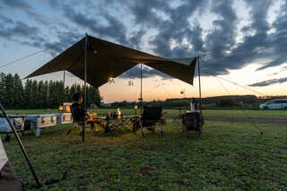 北海道夕張郡栗山町にある「ART×OUTDOOR VILLAGE 栗山」は、旧学校のグラウンドを活用したユニークなキャンプ場です。遮るもののない開放感あふれる敷地では、西の空に沈む美しい夕日や、日没後の幻想的なマジックアワーをゆったりと楽しむことができます。広々としたオートサイトは165㎡~230㎡と贅沢な区画サイズで、大型テントやタープも気兼ねなく設営可能。芝生が整った地面はテント泊にも快適で、虫が少なく清潔な環境が魅力です。さらに、全天候型のハイブリッドサイトは限定2部屋のみの特別仕様で、室内外を自由に行き来しながら天候に左右されず快適にキャンプを楽しめます。周囲は田園風景に囲まれており、都会の喧騒から離れて静かに過ごせるロケーションも魅力。子どもたちは広々とした校庭で自由に走り回れ、ソロキャンパーもプライベート感たっぷりの空間でのんびり過ごせます。シンプルながら快適性を重視した場内設備と、雄大な自然を間近に感じられる開放的な環境が魅力のキャンプ場です。日常から離れてのんびりした時間を過ごしたい方や、夕陽の絶景に癒やされたい方にぴったりのスポットです。