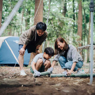 千葉市緑区にある「昭和の森フォレストビレッジ」は、都心から約1時間とアクセスしやすい都市型キャンプ場です。四季折々の自然に囲まれた広大な敷地で、気軽にアウトドアを楽しめると初心者やファミリーに人気。スタッフが24時間常駐しており、チェックイン後はオンラインでの問い合わせにも対応しているため、初めての方でも安心です。