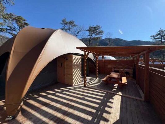 「FORESTDOME付知峡」は、透き通るエメラルドグリーンの付知川沿いに位置し、四季折々の美しい自然が広がるキャンプ場です。豊かな緑に囲まれた静かな環境で、昼間は清流のせせらぎをBGMに川遊びを楽しみ、夜には満天の星空の下で焚き火を囲む贅沢な時間を過ごせます。場内には快適なグランピングドームやオートキャンプサイトが整備され、初心者でも気軽に本格アウトドアを体験できるのが魅力。新たに流しそうめん体験(1日5組限定)も始まり、子どもから大人まで楽しめるアクティビティも充実しています。付知峡の美しい自然は、季節ごとに違う表情を見せてくれるため、訪れるたびに新しい感動を味わえます。便利なアクセスながら非日常感をたっぷり感じられるこのキャンプ場は、家族や友人との特別な思い出作りにぴったりのアウトドアスポットです。