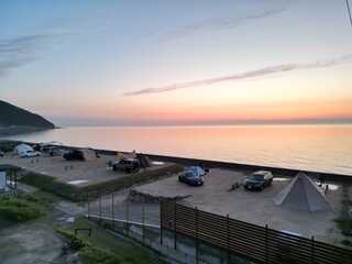「淡路島アウトドアビレッジ津井キャンプ場」は、淡路島西海岸に位置し、瀬戸内海に沈む美しい夕日を眺めながら過ごせる絶景ロケーションが魅力のキャンプ場です。瓦の生産地として知られる津井地区ならではの瓦倉庫や瓦素材を活かしたデザインが特徴で、淡路島らしい雰囲気を味わえます。場内では、キャンプだけでなくカヤックやSUP体験(要予約)、釣りイベントなど、海を舞台にしたアクティビティが充実。お子様連れや初心者でも気軽に楽しめるため、家族旅行やグループキャンプにもぴったりです。夕暮れ時には水平線に沈む夕日を眺めながら焚き火やBBQを楽しむ贅沢なひとときを過ごせます。淡路島ならではの文化と自然が調和したこのキャンプ場は、島時間の魅力をゆったり体感できる穴場的なスポット。都会の喧騒を離れ、自然の中でリフレッシュしたい方や海を楽しむアクティビティを満喫したい方におすすめのキャンプ場です。