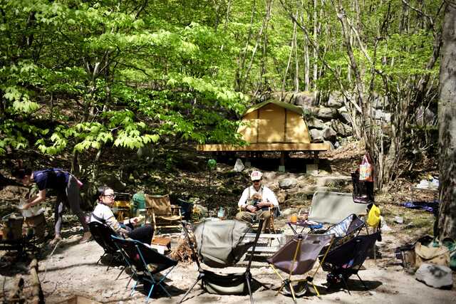 管理棟「GRAND HUTTE」にはPurveyorsのサテライトショップやカフェスペースを併設。キャンプ道具や必要なアイテムも揃い、宿泊者以外でも立ち寄れるのが魅力です。また、テントサウナ体験後に目の前の川でクールダウンする特別な時間を過ごせるのもここならでは。大自然とこだわりの空間が融合した、非日常のアウトドア体験を楽しめるキャンプ場です。