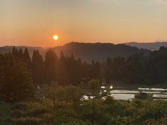 「SUN-RISE 茶倉」は、新潟県十日町市松之山にある1日1組限定のプライベートキャンプ場です。モンゴルの伝統的な住居・パオ(ゲル)での宿泊が楽しめ、焚き火や雨天時のBBQもパオ内で快適に体験可能。キャンプサイトからは棚田や山から昇る美しい朝日を望め、蛍舞う夜の風景と合わせて非日常的な自然の魅力を存分に感じられます。