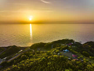「長岡市和島オートキャンプ場」は、日本海を一望できる高台に位置し、絶景のロケーションが魅力の人気キャンプ場です。場内の高台からは、夕日が沈む美しい日本海の景色が広がり、夜には満天の星空を眺められる贅沢な時間を過ごせます。キャンプ場から車で約15分の場所には「寺泊魚の市場通り」があり、地元の新鮮な魚介類を購入してキャンプ飯に取り入れることも可能。アウトドアでの食事がより特別な体験になります。