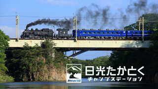 「日光たかとくキャンプステーション」は、東武鬼怒川線・新高徳駅から徒歩すぐの便利なロケーションにあるキャンプ場です。鉄道沿いの鬼怒川畔というロケーションが魅力で、SL「大樹」の通過を眺めながら、川のせせらぎに癒される贅沢な時間を満喫できます。