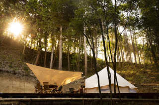雨や虫を気にせず楽しめる屋根付きBBQ棟(防虫ネット付き)、炊事棟、シャワールーム、水洗トイレなどの基本設備も充実。近くには水深が膝下の清流が流れ、小さなお子さまも安心して水遊びができる環境です。春の新緑、夏の爽やかさ、秋の紅葉と、四季折々の自然の表情が訪れる人を迎えてくれます。10組限定の手ぶらキャンププランや施設まるごと貸切プランなど多彩なプランが揃い、家族やグループでの特別な思い出づくりにもぴったりです。