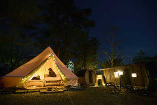 山梨県北杜市小淵沢町にある「PAWS GROUND」は、1日2組限定で森の中に滞在できるプライベートキャンプ場です。北米のハンティングキャンプをモデルにデザインされ、各区画は牧柵で囲まれた完全なプライベート空間。テントやキッチン、お風呂、シャワー、トイレ、焚火場が整備され、快適に過ごせます。区画内はドッグランとしても利用でき、愛犬と自由に遊び回れるのも魅力です。夜は焚火を囲みながら満天の星空を眺め、非日常を味わえる特別な時間を楽しめます。備品も充実し、初心者でも安心。林に囲まれた静かな環境は、ペットと過ごす休日に最適で、星空と焚火に癒される贅沢なひとときを提供します。愛犬家やアウトドア初心者にも人気の高いキャンプ場です。