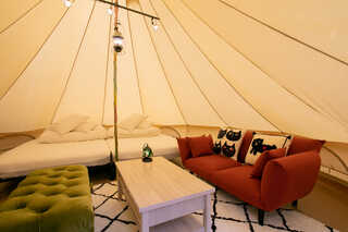 「美山グランピング かやグラ」は、京都府南丹市美山町南新高瀬にある、食事にこだわった手ぶらで行けるグランピング施設です。2022年春、「かやぶきの里」から車で1分の好立地にオープンしました。地元食材をふんだんに使った料理を提供しており、ジビエや夏季のアユ料理、カマドで炊いたご飯ととれたて卵での卵かけご飯などが楽しめます。各テントにはプライベートウッドデッキがあり、150m先にはきれいな清流があるため川遊びも可能です。テント内はおしゃれな家具が揃えられ、冬場はこたつやファンヒーターで暖かく過ごせます。人気のサウナ、トイレ、シャワーも完備されており、宿泊だけでなく日帰りプランにも対応しています。営業は手ぶらでグランピングをコンセプトに、四季を通じて楽しめる施設として展開中です。