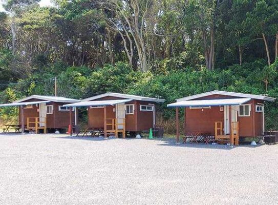 夜には志摩でも有数の星空観賞スポットとして知られ、天気が良ければ満天の星に包まれる贅沢な体験が可能。冬にはすずめ島と夕陽が織りなす幻想的な景観も見どころです。宿泊は素泊まりの宿4室に加え、バンガローやキャビンが14棟あり、一部はペット同伴もOK。屋根付きBBQスペースも完備され、天候を気にせずアウトドアを楽しめます。