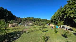 茨城県東茨城郡茨城町にある「しもはじ埴輪キャンプ場」は、水戸市街からもアクセスしやすい里山に広がる会員制キャンプ場です。約2ヘクタールの広大なフィールドに32組限定という贅沢な環境で、春は桜、秋は栗拾いなど四季の移ろいを体感できるのが魅力。直火での焚き火が可能で、自然と共生するキャンプスタイルを楽しめます。