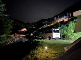湯布院エリア、由布岳を一望できるまだ名前のないキャンプ場は、しいたけ屋が新たに始めた小さなキャンプ場です。キャンプサイトはテントやキャンピングカーを設置するのに十分な広さがあり、貸し切りプランも用意されているため、自分だけの空間でキャンプを楽しめます。隣接するしいたけ栽培所では一年中しいたけ狩りができ、採れたてのしいたけをBBQで味わうことも可能です。スカイデッキやシャワー棟を完備しており、BBQやデイキャンプとしても利用でき、家族や友人と楽しいひとときを過ごせます。さらにキャンプファイヤーや各種アクティビティも用意され、夜には仲間とゆったりとした時間を楽しめます。由布岳の登山口へも車で約10分とアクセス良好で、自然に囲まれたくつろぎのキャンプ体験が叶う湯布院のキャンプ場です。