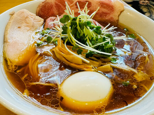 池袋駅から徒歩圏内にある「ジャパニーズ ラーメン 五感」は、その名の通り、五感すべてに響く洗練されたラーメンを提供する人気店です。特に魚介系の出汁にこだわった澄んだスープと、小麦の香りが高い自家製麺の組み合わせは絶妙。従来のラーメンとは一線を画す、繊細で上品な味わいが特徴で、ラーメン通の間でも池袋を代表する名店として知られています。池袋でランチにラーメンを食べたいけれど、重たいものは避けたいという方におすすめです。落ち着いた内装で、女性一人でも気軽に入りやすい雰囲気も魅力の一つ。池袋の喧騒を離れた場所で、日本のラーメン文化の奥深さを感じられる一杯を、ぜひランチに堪能してください。