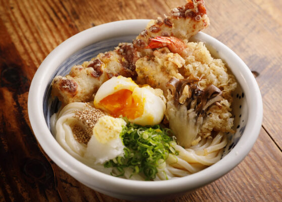 梅田の新梅田食道街にある「梅田 釜たけうどん」は、大阪で讃岐うどんの魅力を広めた立役者の一つとして知られています。ランチタイムは、コシの強い太麺と、熱々で濃厚な出汁が絡むうどんを求めて、行列ができることもしばしば。特に人気の「ちく玉天ぶっかけ」は、大きなちくわ天と半熟玉子天がトッピングされており、ボリュームも味も大満足の梅田ランチになります。大阪駅からもすぐ近く、手軽に本格的なうどんを楽しめるため、出張者や観光客にも大人気です。梅田のレトロな雰囲気の食道街で、大阪名物のうどんランチを満喫してください。