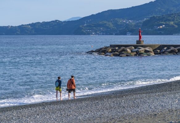 午後のグルメや街歩きを満喫したら、夕方は小田原の自然美を感じられる「御幸の浜海岸」へ足を運びましょう。ここは明治天皇が行幸されたことに由来する歴史ある海岸で、市民や観光客に長く愛されてきた憩いの場所です。西湘バイパスの高架下から海へと続くトンネルを抜けると、まるで映画のワンシーンのように相模湾の大パノラマが広がり、その光景は「絶好のフォトスポット」として人気を集めています。波打ち際を歩きながら潮風を浴びれば、旅の疲れも自然と癒され、穏やかな気持ちに包まれるでしょう。夕暮れ時には、茜色に染まる空ときらめく海が重なり合い、幻想的でロマンチックな景観が広がります。カメラに収めるのも良し、ただ静かに眺めて心に刻むのも良し。小田原日帰り旅のラストを飾るにふさわしいスポットであり、自然と歴史が共鳴する特別なひとときを味わえるはずです。