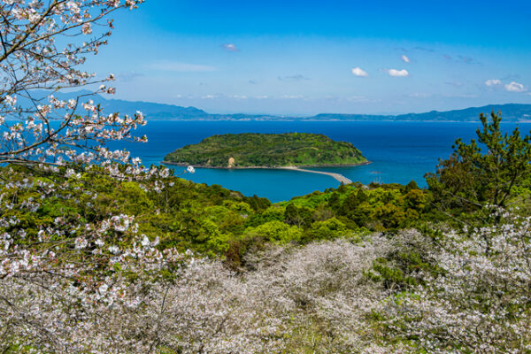 指宿観光2日目の午前中は、神秘的な「知林ヶ島」へ。指宿温泉街から車で約10分の知林ヶ島は、3月から10月の大潮や中潮の干潮時にのみ、本土から島まで約800メートルの砂の道「ちりりんロード」が現れる奇跡の島です。この砂の道を渡って島に行くと、恋愛成就のご利益があると言われており、指宿の人気パワースポットとなっています。知林ヶ島までの道中は、錦江湾の美しい海を眺めながらの散策が楽しめます。島に渡れるタイミングは事前に確認が必要ですが、渡れない時期でも知林ヶ島を望む海岸からの景色は美しく、指宿の自然の魅力を感じられます。知林ヶ島周辺は写真映えするスポットとしても人気で、指宿観光の記念撮影にぴったりの場所です。
