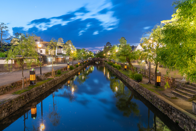 日が暮れると、倉敷美観地区はライトアップされ、幻想的な夜景スポットへと変貌します。白壁の建物が温かみのある光に照らされ、倉敷川の水面に映り込む光景は昼間とはまた違った美しさです。夜の倉敷散策は観光客も少なく、静寂の中で歴史ある町並みをゆっくり堪能できます。夕食は倉敷の地元料理が楽しめる居酒屋へ。瀬戸内の新鮮な魚介を使った刺身や、岡山名物の黄ニラ料理、サワラの刺身など、倉敷ならではの味覚を存分に味わいましょう。地酒を片手に、倉敷の食文化に触れる時間は旅の大きな楽しみの一つです。食事の後は、宿泊先でゆっくり休んで翌日に備えます。倉敷美観地区周辺には風情あるホテルや旅館が多く、倉敷らしい雰囲気の中で過ごす夜は特別な思い出になるでしょう。