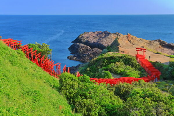 夕方:元乃隅神社で幻想的な赤い鳥居を鑑賞