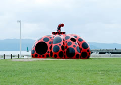 夕方:ベネッセハウス周辺へ移動と「黄かぼちゃ」鑑賞