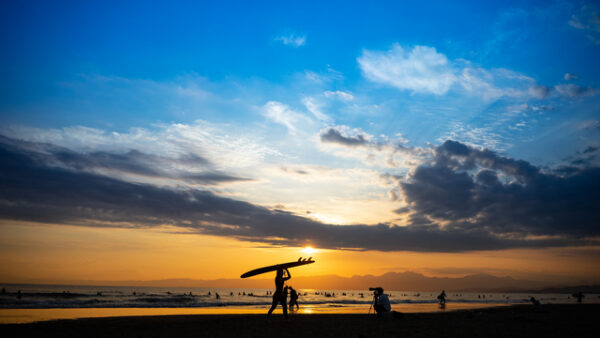 神奈川観光の締めくくりは、湘南の海岸線で夕日を眺めながらの散策です。江の島から稲村ヶ崎方面へ向かえば、サーファーたちが波に乗る光景と、水平線に沈みゆく太陽の美しいコントラストが楽しめます。七里ヶ浜の海岸通りには、オーシャンビューのカフェやレストランが点在し、海を眺めながらゆっくりとティータイムを過ごすのも贅沢な時間です。鎌倉高校前駅周辺は人気アニメの聖地としても知られ、江ノ電と海が織りなす風景は絵になる撮影スポット。由比ヶ浜や材木座海岸を歩けば、地元の人々が夕涼みを楽しむ日常的な湘南の風景に出会えます。波の音を聞きながら、裸足で砂浜を歩くのも心地よいひととき。神奈川の海の魅力を存分に感じられる、思い出に残る夕方となるでしょう。湘南の夕景は、1泊2日の旅を締めくくる最高の贈り物です。