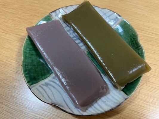 山口外郎(ういろう)の代名詞として知られる、山口市を代表する老舗和菓子店です。こちらの名物「外郎」は、わらび粉を主原料としているのが最大の特徴。米粉や小麦粉で作られる一般的なういろうとは一線を画し、もっちりとしていながらも歯切れが良く、ぷるんとした独特の食感を生み出しています。小豆の風味豊かな「黒」、上品な甘さの「白」、そして香り高い「抹茶」の三種類があり、いずれも素材の味を活かした素朴で優しい味わいが魅力です。甘さ控えめで、のどにまとわりつかないため、幅広い世代に愛されています。