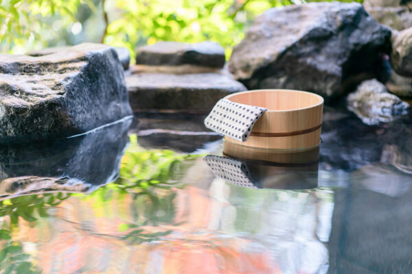 湯河原観光の1日の締めくくりには、温泉宿でゆったりと過ごす時間が最適です。おすすめは「懐石旅庵 阿しか里」。落ち着いた和の雰囲気と美しい庭園に囲まれた宿は、非日常の癒しを与えてくれる空間です。館内では源泉かけ流しの温泉に浸かり、1日の疲れをじんわりと癒すことができます。