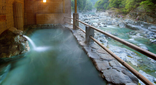 1日の観光を終えたら、四国の秘境「大歩危祖谷温泉郷」でゆったりと過ごしましょう。ここは日本三大秘境のひとつとされる祖谷に位置し、四国三郎・吉野川の清流が流れる美しい渓谷に囲まれています。泉質の異なるいくつかの温泉があり、宿泊施設ごとに特色豊かな湯を楽しめるのが魅力。ケーブルカーで渓谷まで降りて入る露天風呂もあり、雄大な自然の景観や渓流の音に包まれながら入浴する体験は格別です。