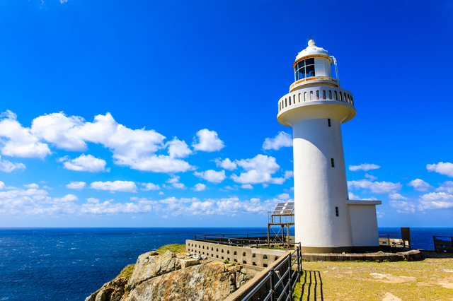 そして夕暮れ時は、福江島の最西端に位置する「大瀬崎灯台」へ。高さ150mの断崖に建つ灯台からは、東シナ海を一望でき、映画のロケ地としても知られる絶景ポイントです。“九州で最後に夕陽が沈む場所”としても有名で、オレンジ色に染まる海と空、そして断崖に浮かぶ灯台のシルエットが織り成す景色は息をのむ美しさ。心に残るサンセット体験で、五島列島の自然美を締めくくりましょう。