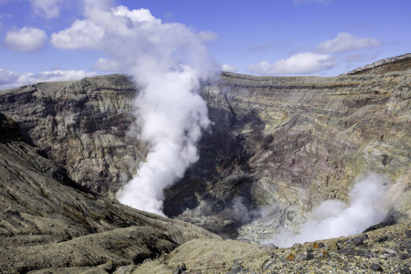旅の締めくくりは、阿蘇のシンボル「阿蘇山上」へ。直径600m、深さ130mもの巨大な火口を持つ中岳は、現在も活発な火山活動を続けており、白い噴煙を間近に望めるダイナミックな景観が広がります。大地の息吹を体感できるこの迫力は、阿蘇ならではの特別な体験。