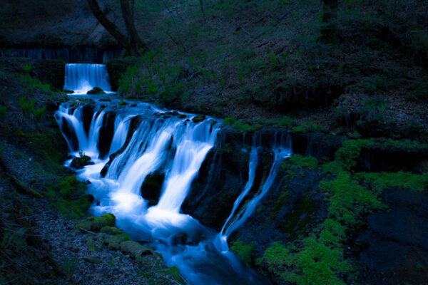 1日目の午前は、軽井沢を代表する景勝地「白糸の滝」からスタート。浅間山の地下水が岩肌から無数の細い糸のように流れ落ちる姿は、まるで白い絹糸を垂らしたように繊細で美しく、訪れる人の心を癒してくれます。滝周辺にはおやきやイワナの塩焼きなど信州ならではのグルメも並び、散策とともに食べ歩きも楽しめます。