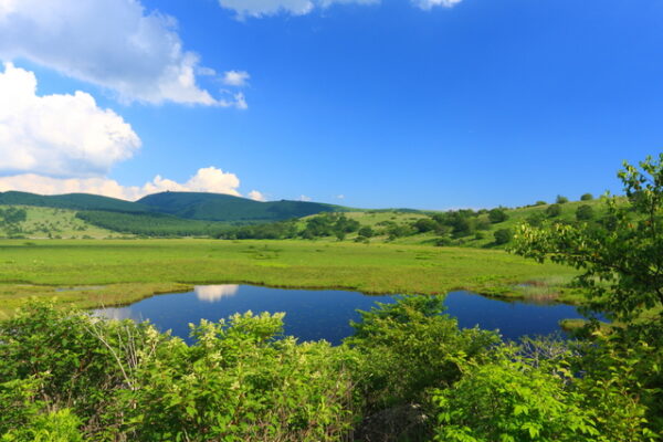 夕方は「八島ヶ原湿原」へ。標高1,630mに位置するこの湿原は「天空の箱庭」とも称される美しい自然環境が広がっています。木道が整備されているため、約1時間半の散策コースを安心して楽しめるのも魅力。四季折々の草花や多彩な植物に出会え、心癒されるひとときを過ごせるでしょう。広大な湿原に広がる空の青と草原の緑が織りなす風景は、まるで絵画のような美しさです。