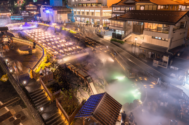 温泉街には、伝統文化に触れられる「熱乃湯」の湯もみショーや、自然に囲まれた「西の河原公園」、名物グルメを味わえる西の河原通りなど、日帰りでも充実した時間を過ごせるスポットが点在。夜には湯畑のライトアップも楽しめ、昼と夜で異なる景観を堪能できます。