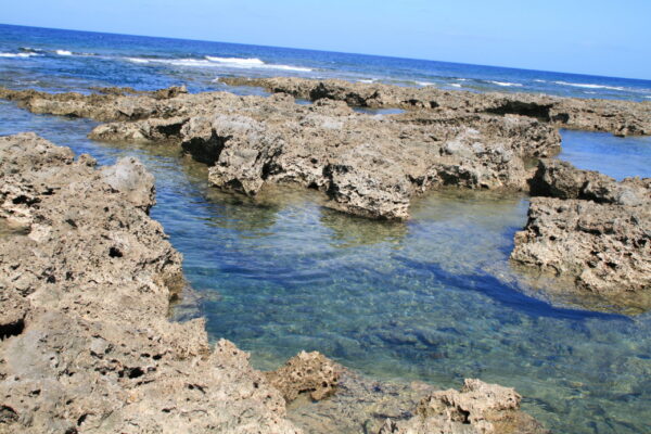 宿泊先のホテルをチェックアウトしたら、まずは久米島の自然が生み出す不思議なスポット「熱帯魚の家」へ。ここは海岸の岩場にできた潮溜まりに、色鮮やかな熱帯魚が自然のまま集まる場所で、まるで天然の水族館のような光景が広がります。海に入らなくても足元のすぐ近くで熱帯魚を観察できるため、小さな子ども連れや水着に着替えたくない旅行者にもおすすめ。