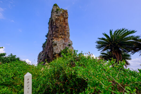 午後に美しい海や文化スポットを巡ったあとは、夕方に久米島のダイナミックな自然が残る「タチジャミ」へ。ここは太古の火山活動によって形成された高さ約250段の階段を下った先に現れる奇岩群で、特に「天宮城」と呼ばれる巨大な岩壁は圧巻の存在感を放ちます。