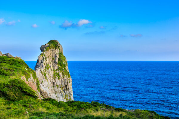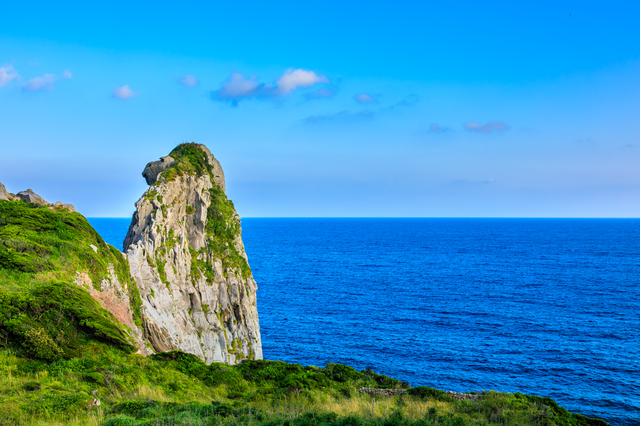 旅の最後は、壱岐の象徴ともいえる「猿岩」へ。黒崎半島の先端にそびえる高さ約45mの巨岩は、まるで“そっぽを向いた猿”のような形をしており、自然がつくり出した芸術作品のような迫力です。夕方には岩肌がオレンジ色に染まり、幻想的な雰囲気に包まれる絶好の夕日スポットとして人気。カメラを片手に、壱岐ならではのダイナミックな風景を写真に収めましょう。