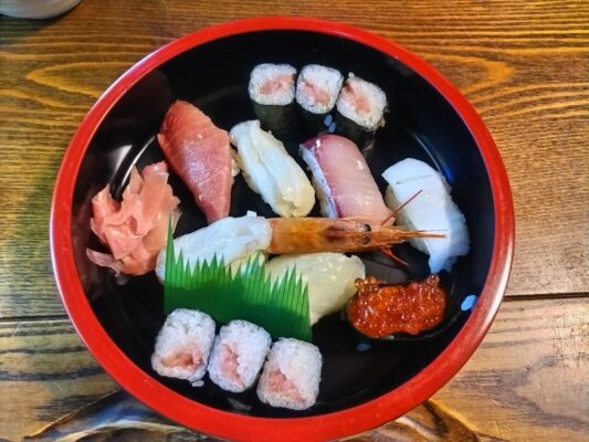 ひたちなか市で新鮮な寿司ランチを楽しむなら「市場寿し」がおすすめです。那珂湊おさかな市場のすぐそばにあるこのお店は、水揚げされたばかりの新鮮な魚介を使った寿司が堪能できる人気店です。ネタの鮮度とボリュームに定評があり、地元の人はもちろん観光客にも愛されています。ランチタイムには、おまかせ握りや海鮮丼、ちらし寿司など多彩なメニューが揃っており、どれもコストパフォーマンス抜群。特におすすめは「特選にぎり」で、トロやイクラ、ホタテなど、その日のおすすめネタが並ぶ豪華な内容です。ネタは大ぶりで食べ応えがあり、シャリとのバランスも絶妙。新鮮な魚の旨みをしっかりと味わえます。天ぷらや茶碗蒸しが付いたセットもあり、満足度の高いランチが楽しめます。店内はカウンター席や座敷席があり、家族連れや観光の合間の食事にも最適。寿司職人が目の前で握るライブ感も魅力です。ひたちなかで旬の魚を味わいたいなら、市場寿しで極上の海の幸ランチを堪能してみてください。