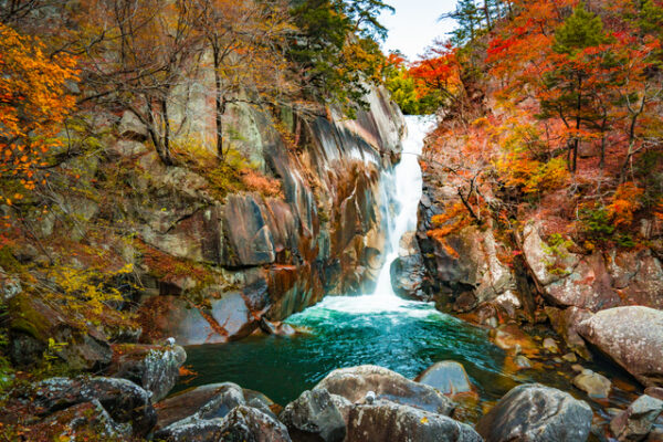 甲府観光1日目の午後は、日本一の渓谷美と称される昇仙峡へ向かいます。甲府駅から車で約30分、バスでもアクセス可能なこの景勝地は、甲府を訪れたら必ず立ち寄りたいスポットです。昇仙峡の見どころは、花崗岩が長い年月をかけて削られてできた奇岩奇石の数々。特に高さ180メートルの「覚円峰」は圧巻の迫力です。渓谷沿いの遊歩道を歩けば、四季折々の自然美と清流のせせらぎに癒されます。10月下旬から11月中旬の紅葉シーズンは特に美しく、多くの観光客で賑わいます。昇仙峡ロープウェイで山頂へ上がれば、富士山や南アルプスを望む大パノラマが広がります。昇仙峡での滞在時間は2〜3時間が目安。甲府の大自然を存分に体感できる、一泊二日旅行のハイライトとなるでしょう。
