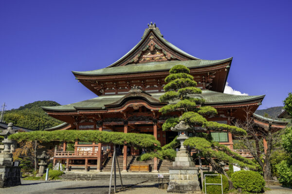 甲府観光2日目の午前は、国の重要文化財に指定されている甲斐善光寺を訪れましょう。武田信玄が信濃善光寺の焼失を恐れて建立したこの寺院は、甲府を代表する歴史的建造物です。東日本最大級の木造建築である金堂は圧巻の存在感。静寂に包まれた境内を散策すれば、心が洗われるような清々しい気持ちになります。鳴き龍と呼ばれる天井画も必見です。甲斐善光寺の参拝後は、甲府盆地を一望できる展望スポットへ。愛宕山こどもの国からの眺めは格別で、甲府市街や富士山、南アルプスの山々が織りなす絶景が広がります。朝の澄んだ空気の中で眺める景色は、甲府旅行の忘れられない思い出になるでしょう。午前中のうちに展望と歴史の両方を楽しめる、充実したコースです。