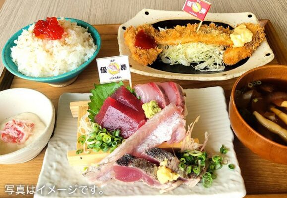 小田原漁港のすぐ近くにある「漁港の駅 TOTOCO小田原」の2階に位置する「小田原漁港 とと丸食堂」は、新鮮な海鮮をカジュアルに楽しめる人気のランチスポットです。漁港直送の新鮮な魚介をふんだんに使用した海鮮丼や定食は、観光客に大人気。特に、ボリューム満点で写真映えもする海鮮丼は、安くて美味しい小田原ランチを象徴するメニューです。広々としたフードコート形式の店内で、活気あふれる雰囲気の中、出来立ての海鮮料理をすぐに味わえるのが魅力です。小田原漁港を訪れた際には、立ち寄り必須のランチスポットであり、新鮮な魚介をリーズナブルな価格で満喫したい方に最適です。小田原の海の幸の魅力を存分に感じられる美味しいランチを、ぜひ「とと丸食堂」で体験してください。