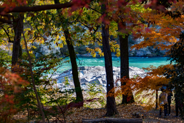 遊歩道を歩きながら、対岸の紅葉や岩肌の美しさを眺めれば、自然がつくり出す壮大なアートに心が洗われるよう。時間があれば、ライン下りやボートクルーズで水上から景色を楽しむのもおすすめです。
