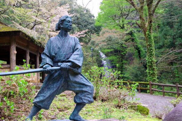 2日目のスタートは、福井市の自然美を代表する「一乗滝」へ。落差12mの滝が岩肌を勢いよく流れ落ちる姿は圧巻で、滝壺の周囲にはマイナスイオンがあふれています。剣豪・佐々木小次郎が秘剣「燕返し」を編み出した地としても知られ、滝の入り口には彼の銅像が立ち、静かな気配の中に歴史ロマンが漂います。