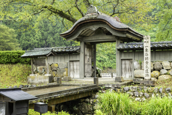 1日目の午前は、福井を代表する二大スポット「一乗谷朝倉氏遺跡」と「福井市美術館」を巡るコースからスタート。まず訪れたいのは、戦国時代に越前を治めた朝倉氏が本拠を置いた一乗谷。かつて1万人が暮らしたとされる城下町の跡には、武家屋敷や町屋が当時の姿で復元され、まるで戦国の都を歩いているような臨場感を味わえます。春には桜、秋には紅葉が映え、歴史と自然の調和した美しい風景も見どころ。