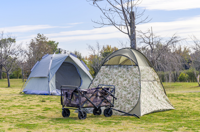 ワンタッチテントとポップアップテントは、どちらも設営が簡単なテントとして人気ですが、構造と設営方法に明確な違いがあります。ワンタッチテントは傘を開くような仕組みで、フレームが本体に組み込まれており、紐を引いたりレバーを操作することで骨組みが展開します。一方、ポップアップテントは袋から取り出すだけで自動的に立ち上がる構造になっており、主にビーチやピクニックなどの軽いレジャー向けです。ワンタッチテントの方が耐久性や安定性に優れており、本格的なキャンプにも対応できる設計になっています。また、収納時のサイズもワンタッチテントはコンパクトに畳めるのに対し、ポップアップテントは円盤状になるため、車のトランクのスペースを取りやすい傾向があります。用途や使用頻度に応じて、最適なタイプを選ぶことが大切です。