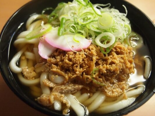 ぷらっとぴっと 7・8番ホームは、小倉駅の在来線ホームにある立ち食いうどん店で、小倉の「かしわうどん」を味わうなら「行ってみたい!」と思わせる名店です。特に、乗り換えの合間や急いでいる時でも、安くて美味しいうどんをサッと食べられるのが魅力です。北九州名物である「かしわうどん」は、甘辛く煮込まれた鶏肉(かしわ)の旨みがたっぷり染み出た出汁と、柔らかい食感の麺が特徴で、地元民のソウルフードとして深く愛されています。小倉駅のホームという独特のロケーションで、旅情を感じながら美味しい小倉うどんをすすれば、忘れられないランチ体験になるでしょう。