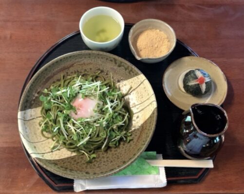 県道49号線沿いにある茅葺き屋根が印象的な古民家を再生したお店です。茶そばが名物で、ぶっかけタイプの茶そばにおにぎりとわらび餅がセットになった茶そばセットが人気メニューとなっています。店内は落ち着いた雰囲気の座敷席があり、ゆったりとした時間を過ごせます。永沢寺の花しょうぶ園やシバザクラの名所「花のじゅうたん」などの観光スポットからも近く、ドライブやツーリングの途中に立ち寄るのにぴったりです。茅葺き屋根の外観と周囲の自然が調和した美しい景色も楽しめます。営業は火曜日から日曜日で、平日は休みの場合もあるため、事前の確認がおすすめです。冬季は休業となります。