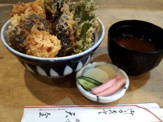 昭和23年創業、60年以上の歴史を持つ老舗の天ぷら専門店です。ランチタイム(12:00~14:30)には、一つ一つ揚げたてで仕上げられる天丼が看板メニュー。衣を薄く「花揚げ」という技法で仕上げることで、衣のサクサク感と素材の旨みが際立つ一皿が楽しめます。店内はカウンター・座敷席がある空間で、ひとり旅でも散策途中の立ち寄りでも気軽に利用できます。旅先で「揚げたての天丼をゆっくり味わいたい」と思ったときに、天金はまさにおすすめの一軒です。